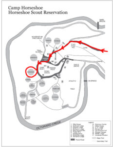 Campsite is BOONESBORO. The maps below shows the path from the entrance to the parking lot and where the site is: